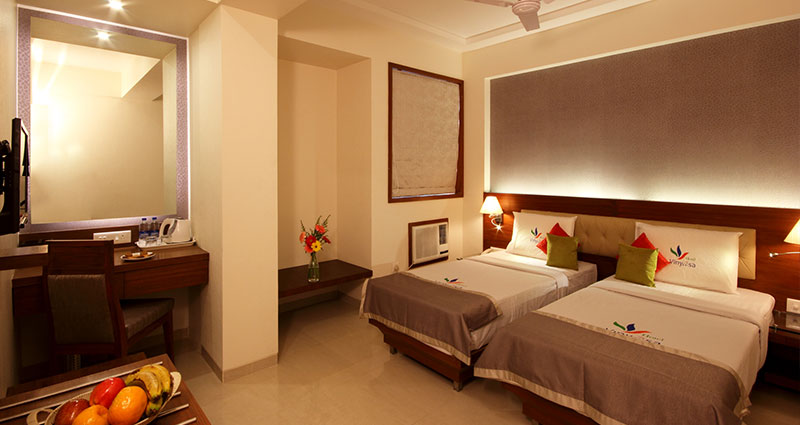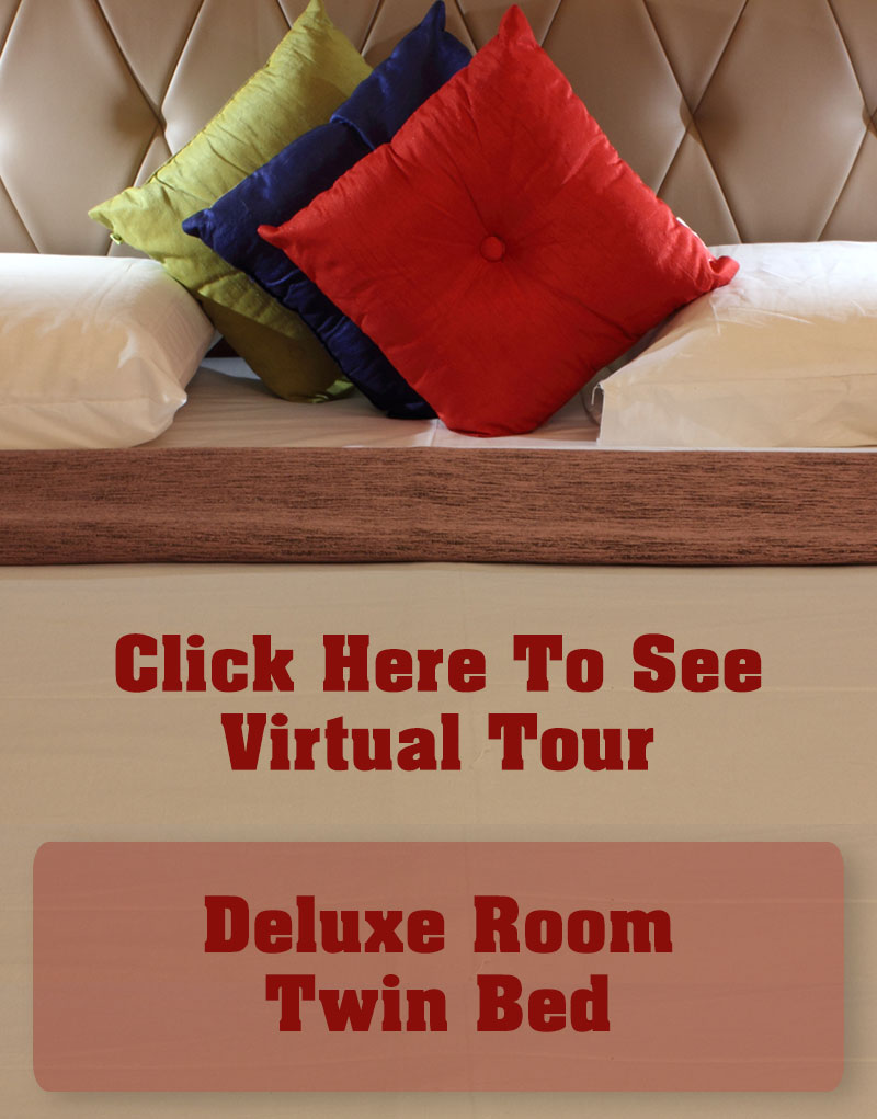 Deluxe Room [Twin Beds] are designed for visiting 2-3 executives who come on a business trip or meeting. With two separate beds, Guests can sleep separately if needed. Because of the larger room size, one can easily accommodate up to 3 individuals. Though Twin Bed rooms have space between two beds, still they have sense of space.